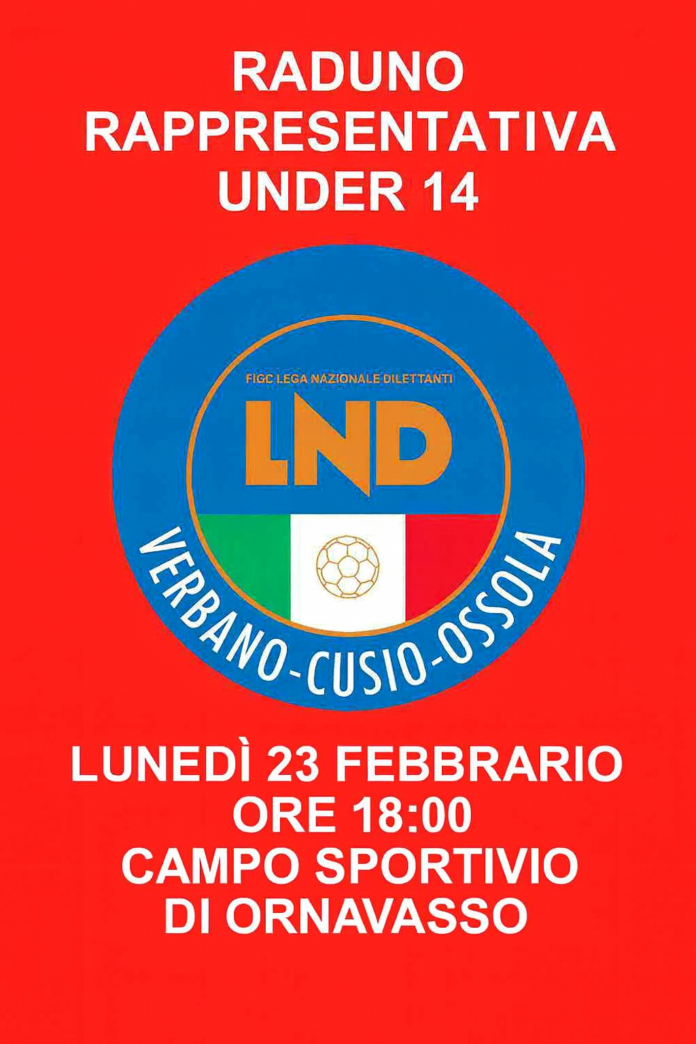 Il raduno di selezione si terrà lunedì 23 febbraio 2026 (ritrovo ore 18:00), presso il campo sportivo comunale di Ornavasso (Via Menconi), e in tale occasione si svolgerà un allenamento con la squadra Under 15 di USD Ornavassese (inizio ore 18:30).
