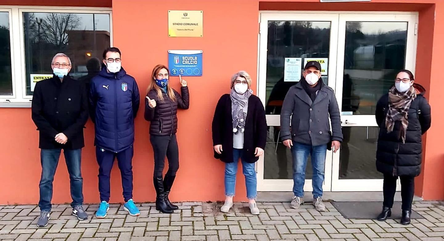 Consegnata dal Referente dell’AdB di Novara Eligio Sicignano la targa di Scuola Calcio alla responsabile organizzativa dell’Arona Calcio, Elena Colombo, e al vice presidente, Antonio Notte.