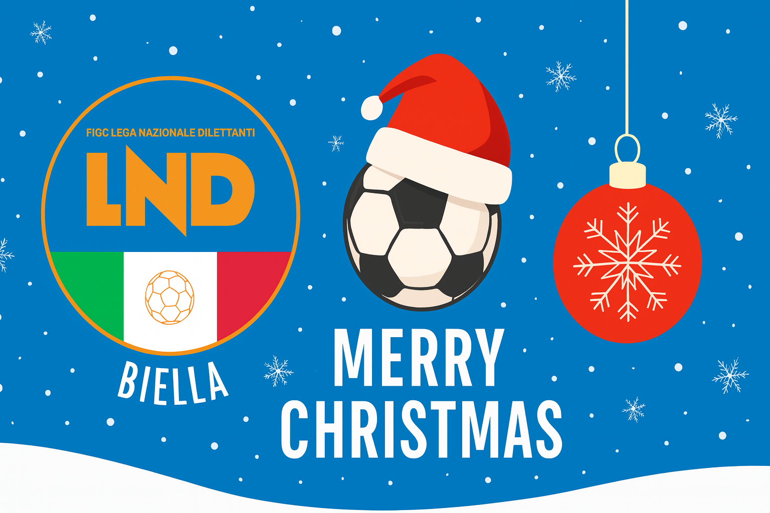 Il Delegato, i Giudici Sportivi ed i Componenti tutti della Delegazione Provinciale di Biella, unitamente all’Impiegato, esprimono i più sentiti Auguri di Buon Natale e Felice Anno Nuovo a tutti i Presidenti di Società, Dirigenti Sportivi e Federali, Tecnici, Calciatori, Arbitri e tutti i Collaboratori che operano a vario titolo per le Società Dipendenti: che il 2025 sia per tutti un anno pieno di soddisfazioni personali e sportive!