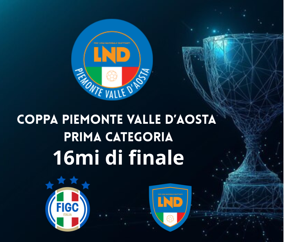 Sono stati deliberati ieri gli accoppiamenti dei sedicesimi di finale della Coppa Piemonte Valle D’Aosta di Prima categoria; il doppio turno previsto in orario serale il 20 novembre e il 4 dicembre.