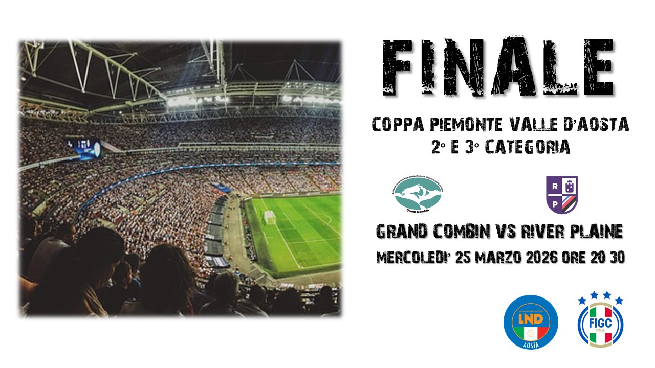 Tutto pronto per il capitolo conclusivo della Coppa Piemonte Valle d’Aosta di seconda e terza categoria, mercoledì 25 marzo allo Stadio Comunale di Saint Christophe – Loc. Provot andrà in scena la finale tra il Grand Combin ed il River Plaine con il calcio di inizio programmato per le ore 20.30.