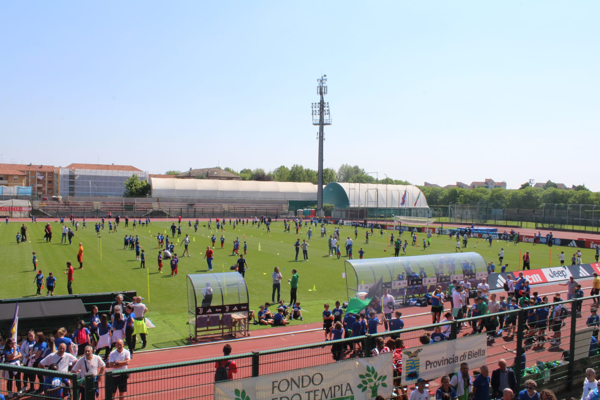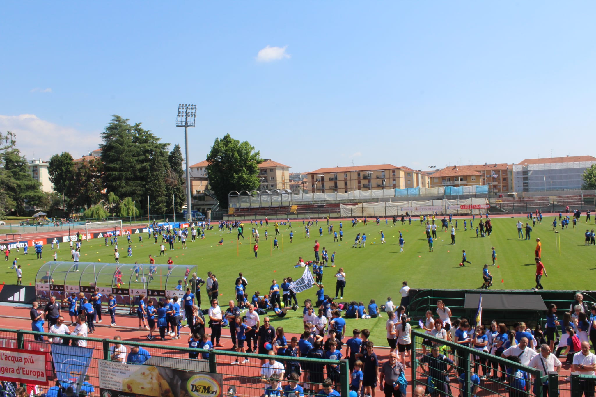 Tenendo conto dei vari eventi che si sono susseguiti a Biella nella giornata di Sabato, non ci aspettavamo di vedere le tribune dello Stadio Pozzo – La Marmora così gremite di Genitori, Nonni, Bambini e Bambine festanti, pronti ad applaudire e fare il tifo per i piccoli calciatori e le piccole calciatrici (erano più di 1.200) che sfilavano sulla pista di atletica vestiti con i colori delle loro Società.