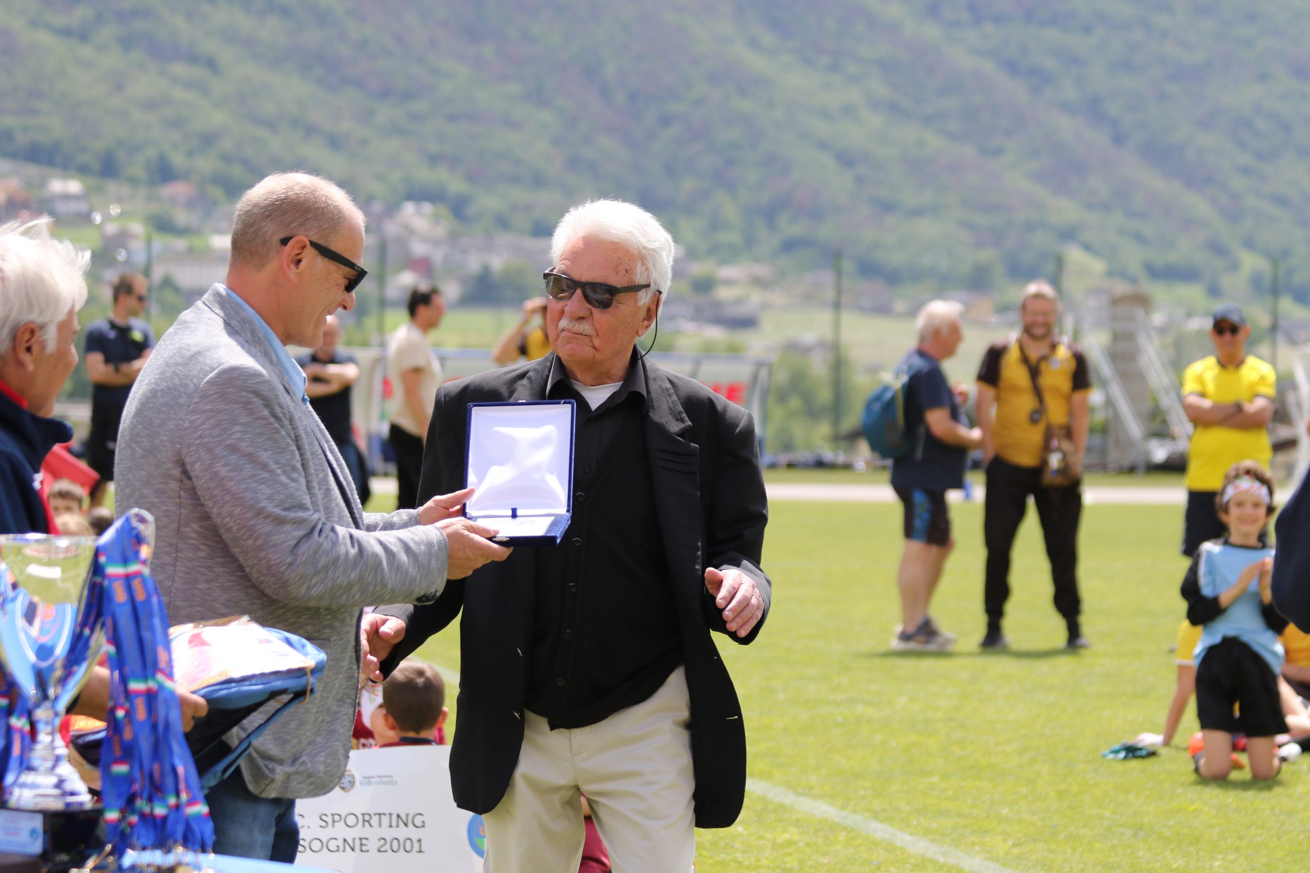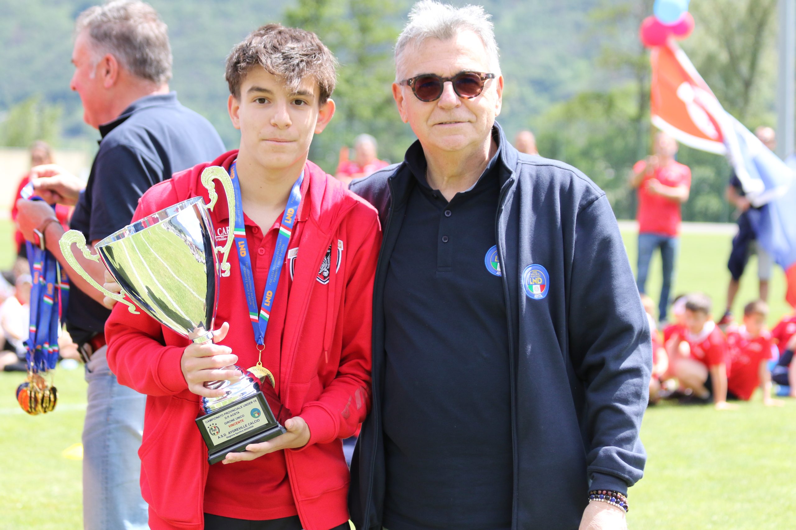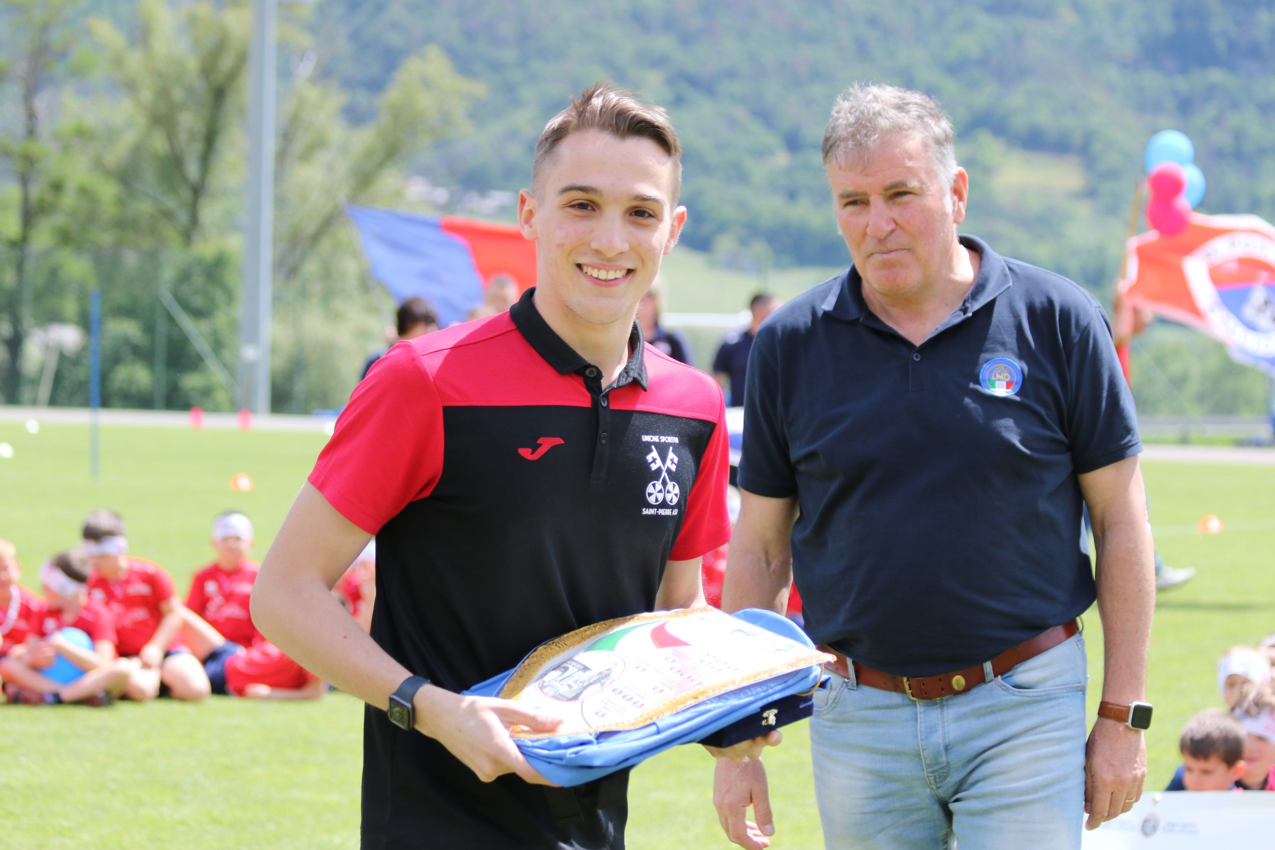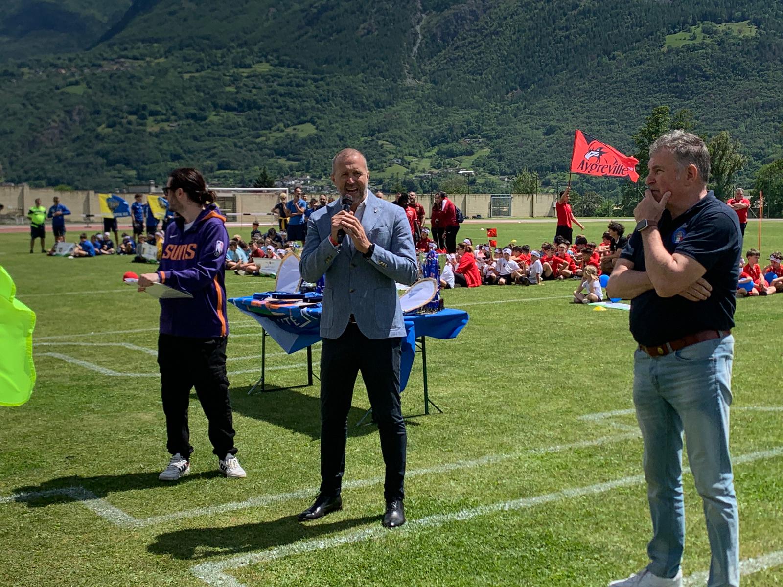 La Festa del Calcio Giovanile continua con la premiazione dei dirigenti che si sono contraddistinti per spirito di sacrificio e dedizione al calcio, Fughetta Gianfranco per il C.G.C. Aosta, Esposito Simone per il Saint Pierre e Luboz Luciano per il Pol. Grand Paradis e con le premiazioni delle squadre che hanno vinto i campionati: l’Aygreville Calcio con gli Under 15, l’Aosta Calcio 511 con gli Under 17 e l’EDF Saint Christophe con la Terza Categoria.