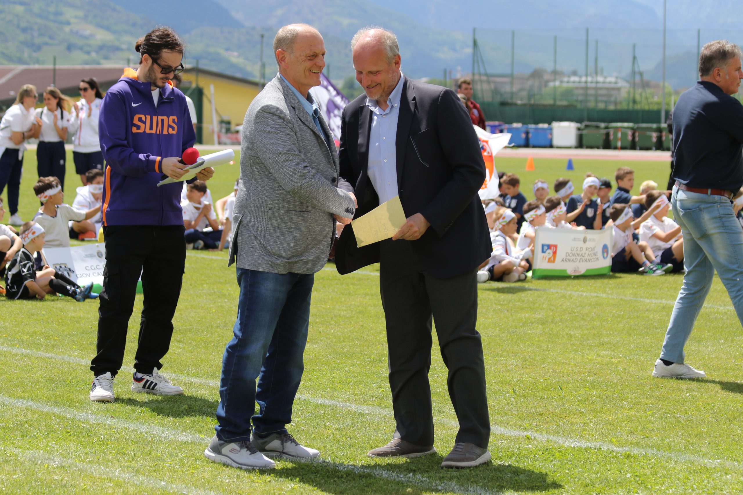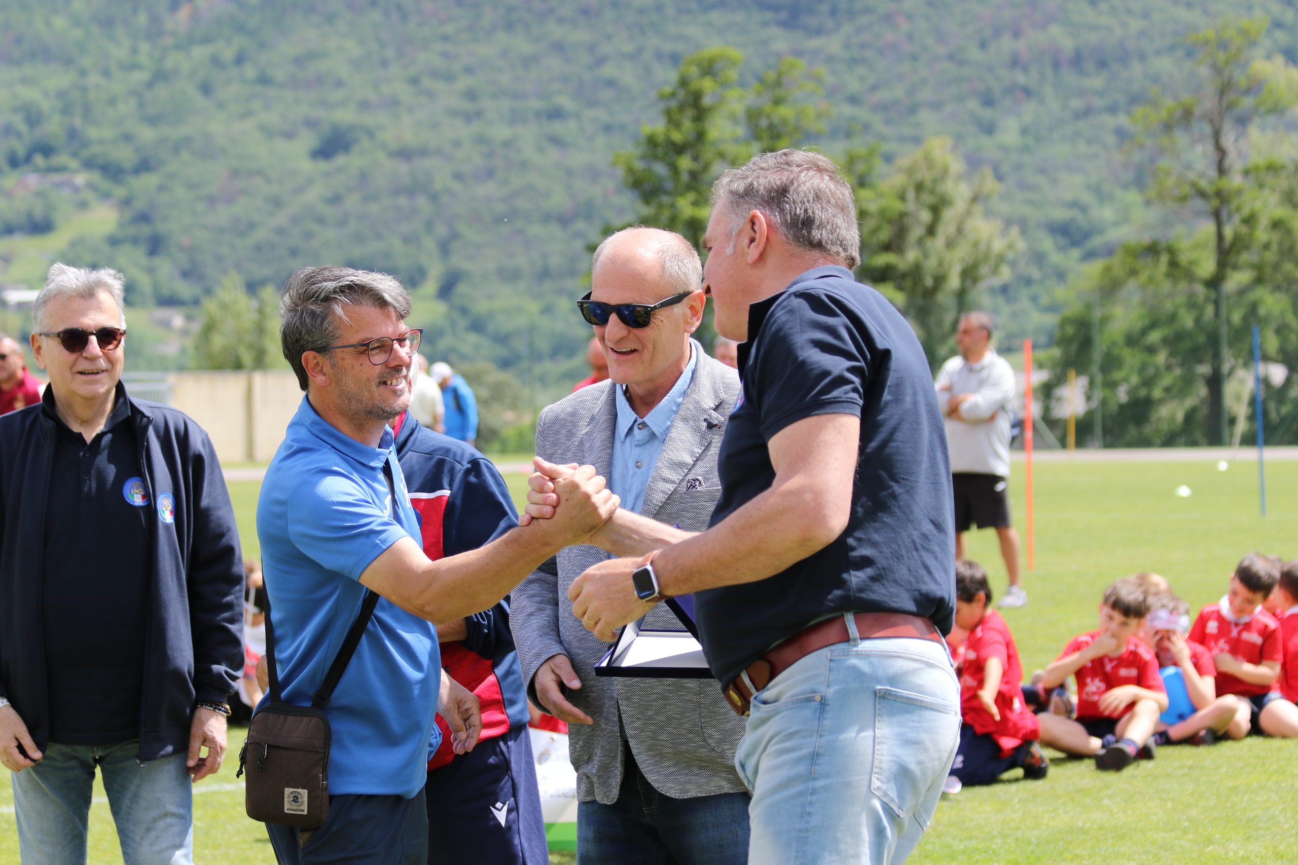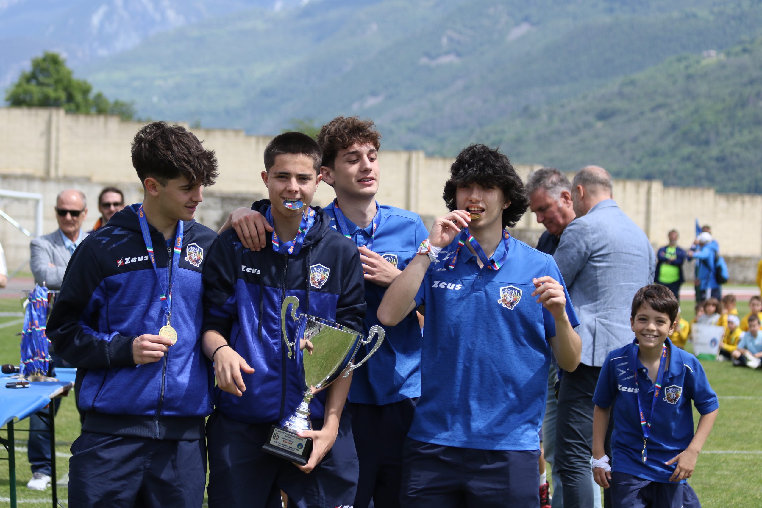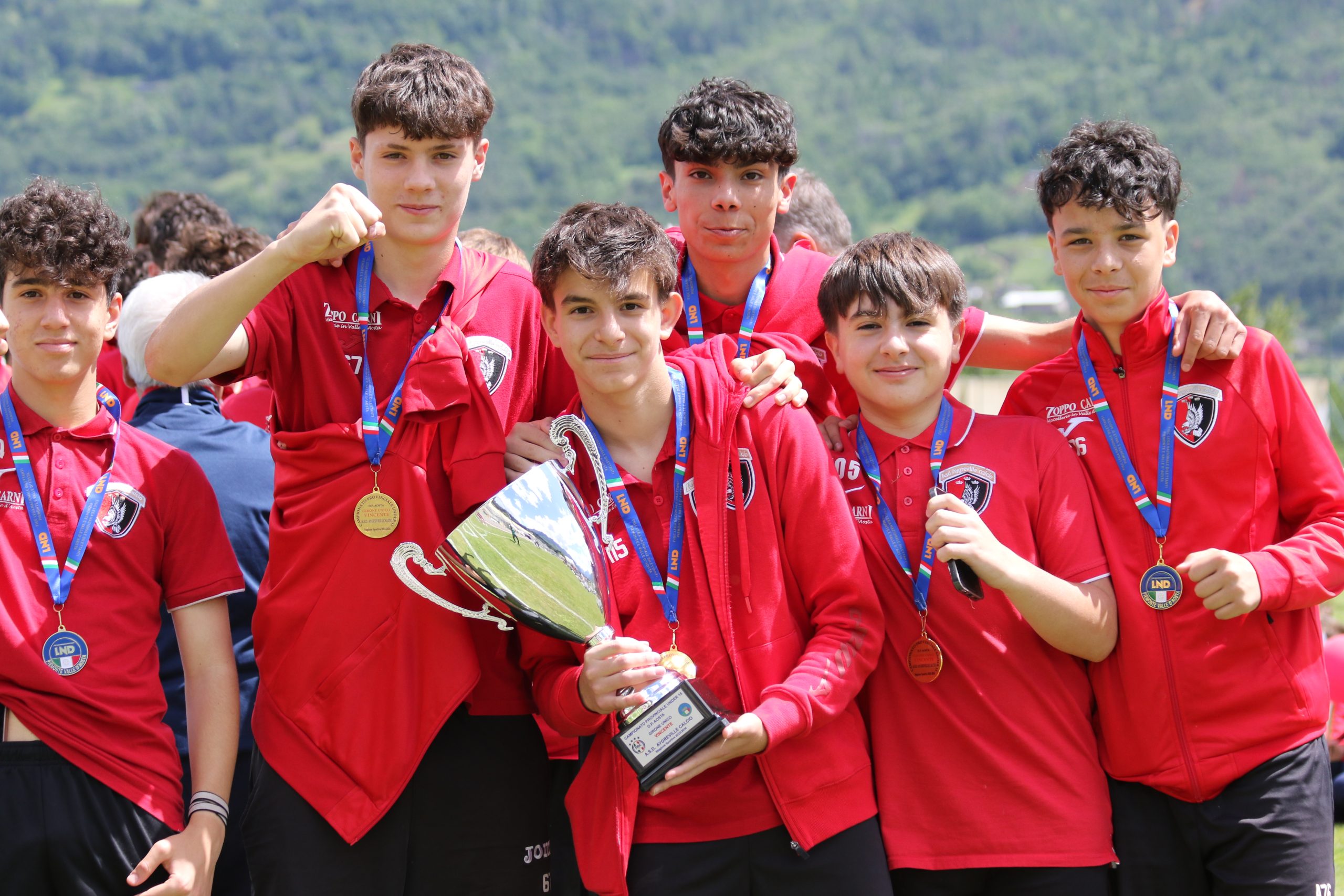 La Festa del Calcio Giovanile continua con la premiazione dei dirigenti che si sono contraddistinti per spirito di sacrificio e dedizione al calcio, Fughetta Gianfranco per il C.G.C. Aosta, Esposito Simone per il Saint Pierre e Luboz Luciano per il Pol. Grand Paradis e con le premiazioni delle squadre che hanno vinto i campionati: l’Aygreville Calcio con gli Under 15, l’Aosta Calcio 511 con gli Under 17 e l’EDF Saint Christophe con la Terza Categoria.