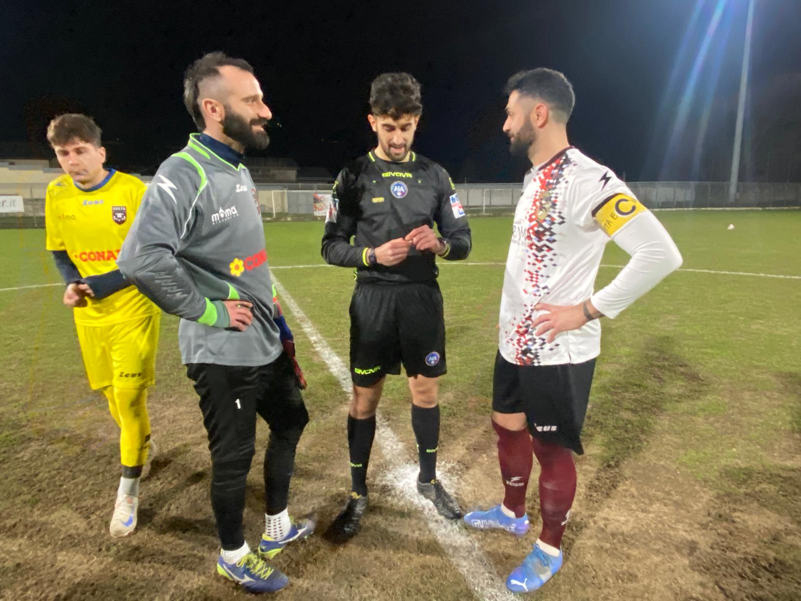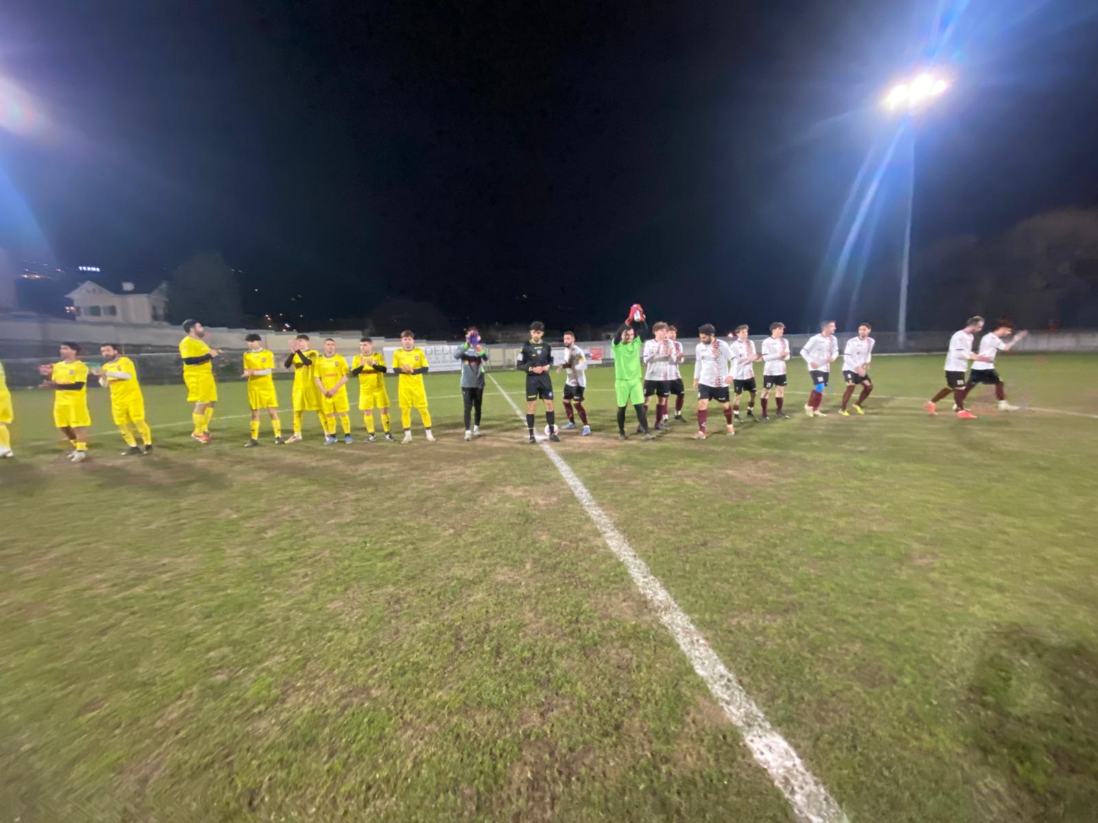 La gara è iniziata alle 20.30 e dopo un minuto i ragazzi di mister Bravi si portano avanti con il gol del n.2 Campagnolo Marco, una discesa sulla fascia destra, per poi accentrarsi e tirare una sassata sotto la traversa che il n.1 dell’Aosta Costantino non ha potuto farci nulla, il raddoppio al 36 con il n.10, il bomber della squadra, Sterrantino Francesco, sfrutta un traversone e di testa insacca per la rete del 2 a 0.