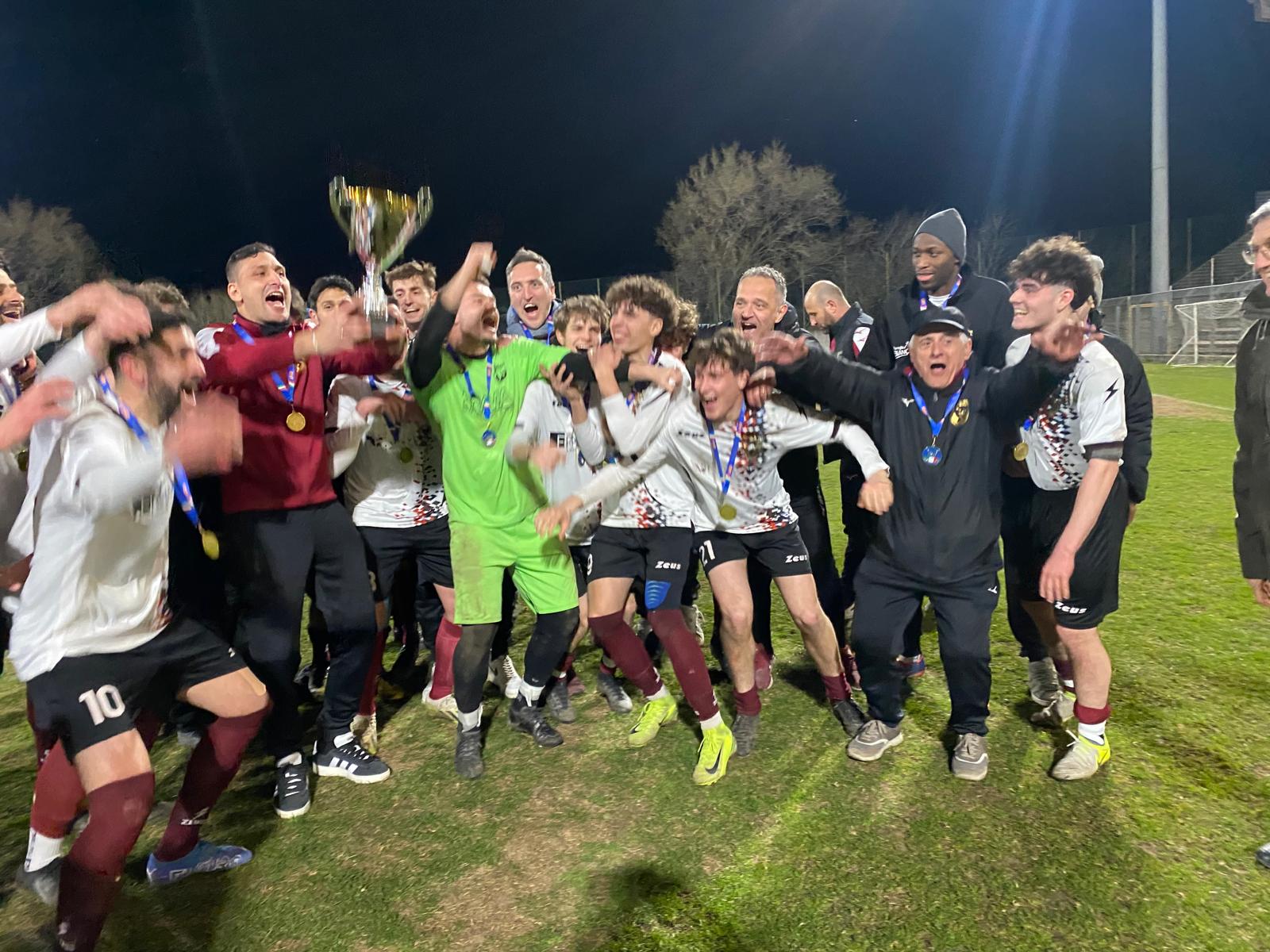 Il triplice fischio del Sig. Anas Guitouri, arbitro della sezione AIA di Aosta, consegna ufficialmente la coppa al Saint Christophe, premiata dal Vice Presidente del Comitato Regionale Eudo Giachetti insieme al Sindaco di Saint Vincent Francesco Favre.