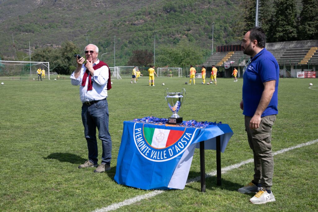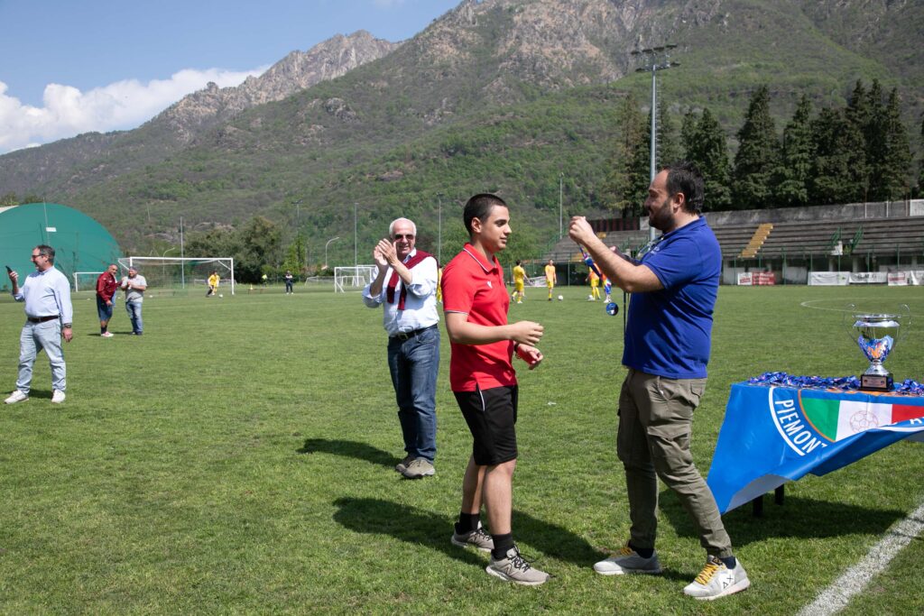 La cerimonia si è svolta direttamente sul campo, pochi istanti prima dell’inizio della gara di Prima Categoria Omegna–Feriolo, permettendo ai ragazzi allenati da Alessandro Guidetti di celebrare il traguardo davanti a un pubblico numeroso e partecipe, che ha tributato loro il giusto riconoscimento per un percorso stagionale di assoluto valore.