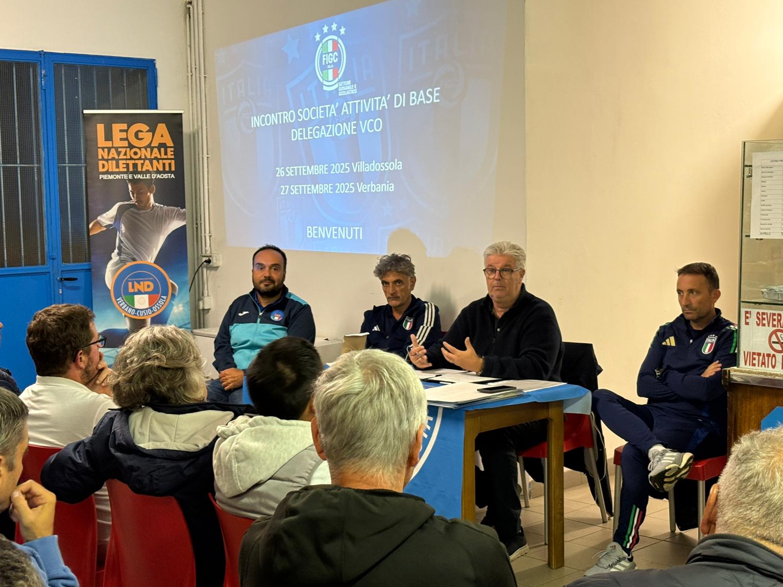 La Delegazione VCO ha incontrato le Società che parteciperanno alla fase autunnale dell’Attività di base. Gli incontri si sono svolti, come tradizione da qualche anno, in due momenti secondo l’ubicazione territoriale delle società: venerdì 26 settembre presso lo stadio “Poscio” di Villadossola (ospiti della Virtus Villadossola) e sabato 27 settembre a Verbania presso la Sede.